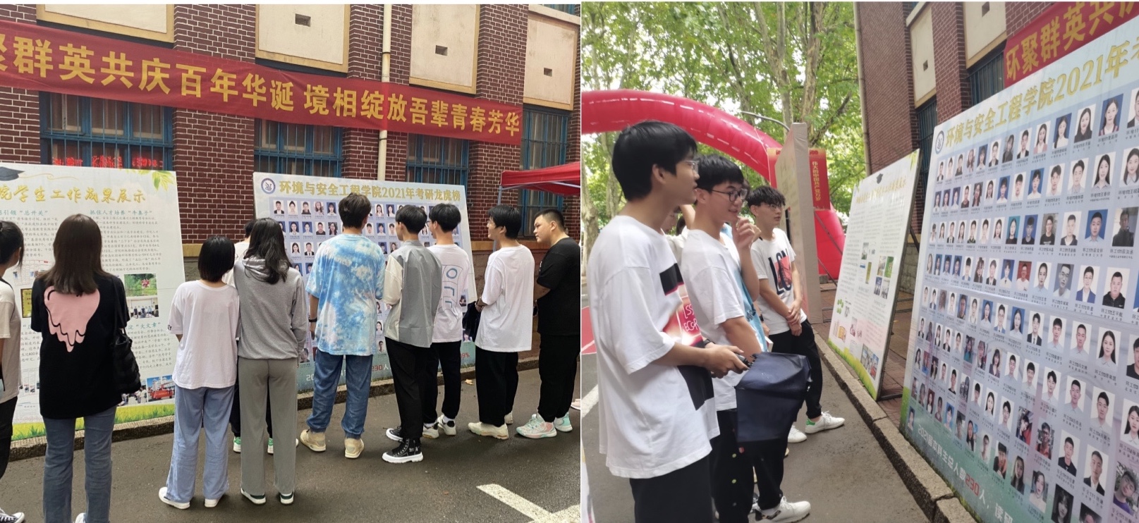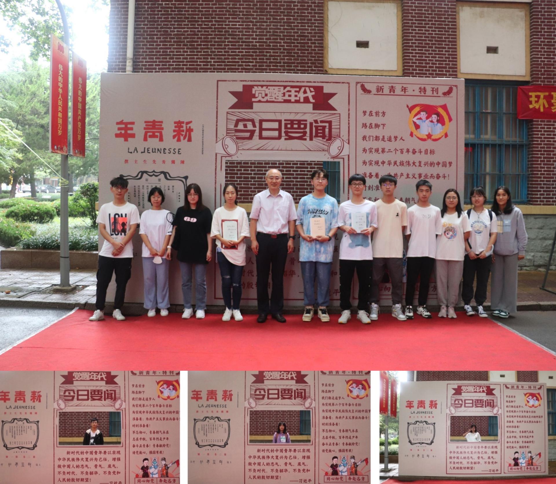 礼赞新时代,争做新青年。今年是中国共产党成立100周年,环境学院充分发挥全过程育人理念,把思政教育和党史学习教育融入到迎新工作当中。学院设置迎新红毯,学生经“请党放心,强国有我”迎新拱门,到达《新青年》杂志样式的合影展板,展板中融入了深受青年喜爱的《觉醒年代》电视剧元素与奥运军团、防疫工作者、抗洪士兵的人物形象,并写有习近平总书记对中国青年的殷切期望以及对新生不忘初心、不负青春的勉励话语,以启迪学生知恩感恩,爱国爱党。