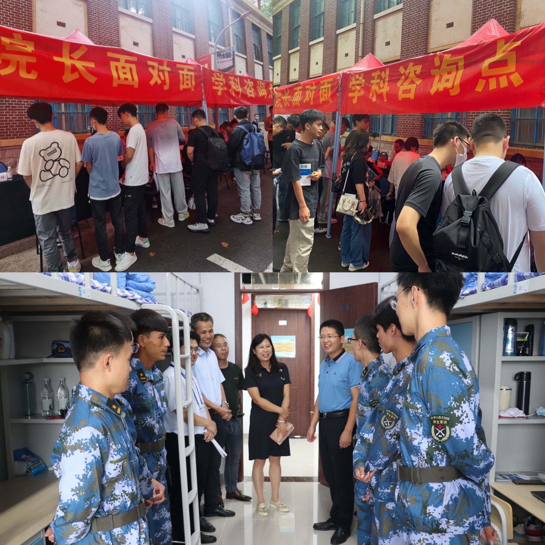 融入新环境,开启新征程。今年,学院继续保持传统“院长面对面”“班主任工作站”和“专业咨询点”三个迎新板块,学院党政领导、各教研室主任和新生班主任均到迎新现场,与新生交流,向学生讲解学科专业发展、人才培养目标、课程设置、就业方向及发展前景等情况。新生报到后,学院党政领导也第一时间到宿舍看望新生,以帮助学生尽快适应新环境。