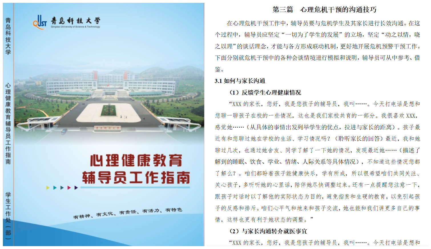 用好心理育人师资队伍,促使家庭成为学生心理健康的“受益人”。学校开设的心理健康教育必修课程采取体验式教学模式,带领学生积极正向表达和沟通,发展自我优势;在提供咨询服务过程中,科学合理地纳入家庭关系,促使学生发生更多与家庭的连接。在面对危机个案时,对家庭开展亲职教育,推动家长转变亲子沟通模式,理解和接纳学生的困境;出版《365英国上市公司官网辅导员心理工作指南》,为开展温暖有力的家校对话提供具体参考。学校各项举措的制定实施,学生日新月异的变化,都会让家长感受到这个学校的用心用力用情。