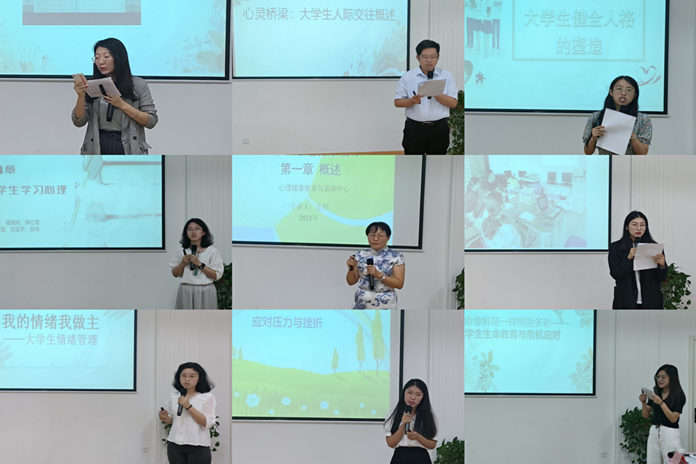 为进一步贯彻落实《高等学校学生心理健康教育指导纲要》精神,扎实提升教育教学质量,9月18日上午,《大学生心理健康辅导》说课大赛暨课程研讨总结会在学校心理中心团辅室召开。心理健康教育教研室成员、全体授课教师参加此次会议。