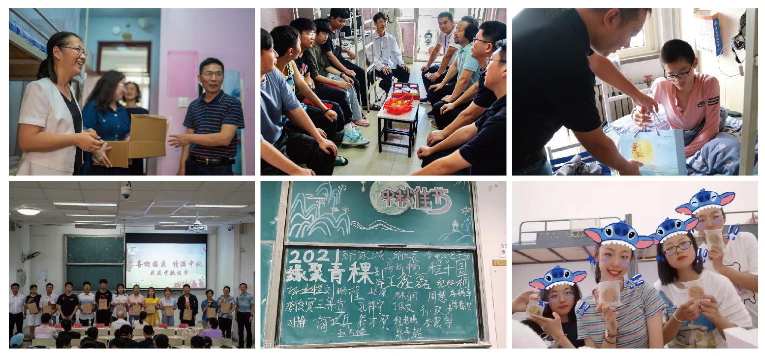 数理学院党委书记李淑贞带队走访学生宿舍,了解同学们的生活学习状况和思想动态,叮嘱同学们遵守疫情防控要求,健康快乐过中秋。学院精心准备了新生定制版月饼礼盒,每个礼盒都由辅导员带领学生干部亲手设计包装,由副院长王明辉、郭广海送至各新生宿舍,让新生感受到学院的用心和温暖。