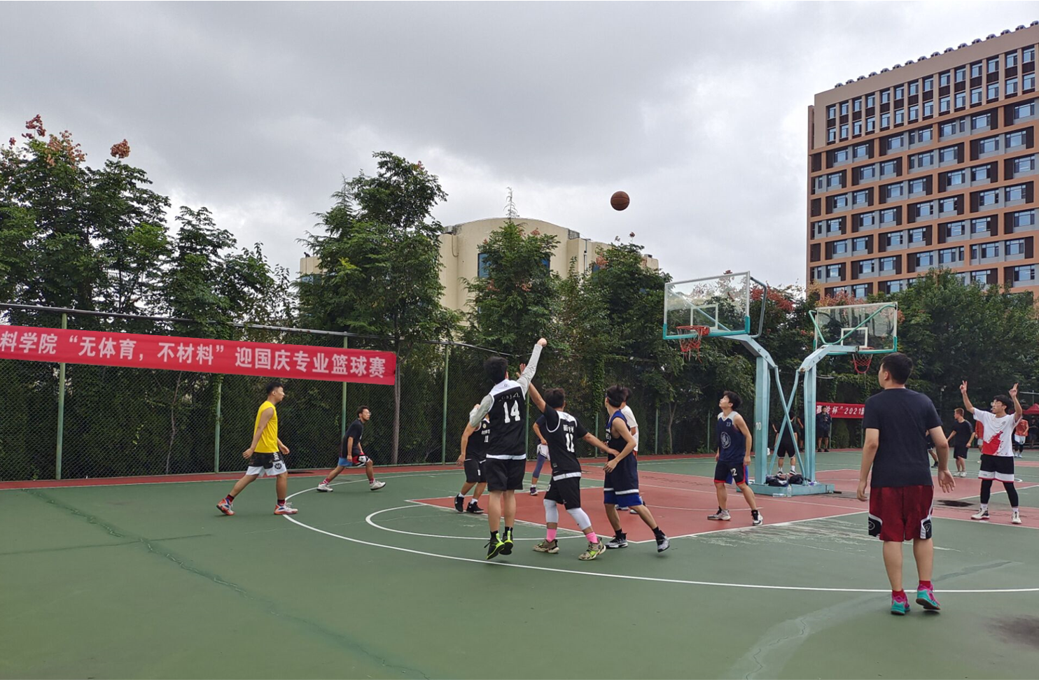 以体育凝心聚力,以运动礼赞国庆。学院举办“无体育,不材料”迎国庆专业篮球赛。该活动是学院以成立院级体育联盟为契机、推广“无体育,不材料”学院特色体育运动品牌为目的,值祖国72岁生日之际,以专业为单位,覆盖全院研究生和本科生的一项篮球赛事。学生通过在球场挥洒汗水,向祖国表达以强健体魄奋斗无悔青春的决心,向学校献上以实际行动贯彻体育综合改革的承诺。