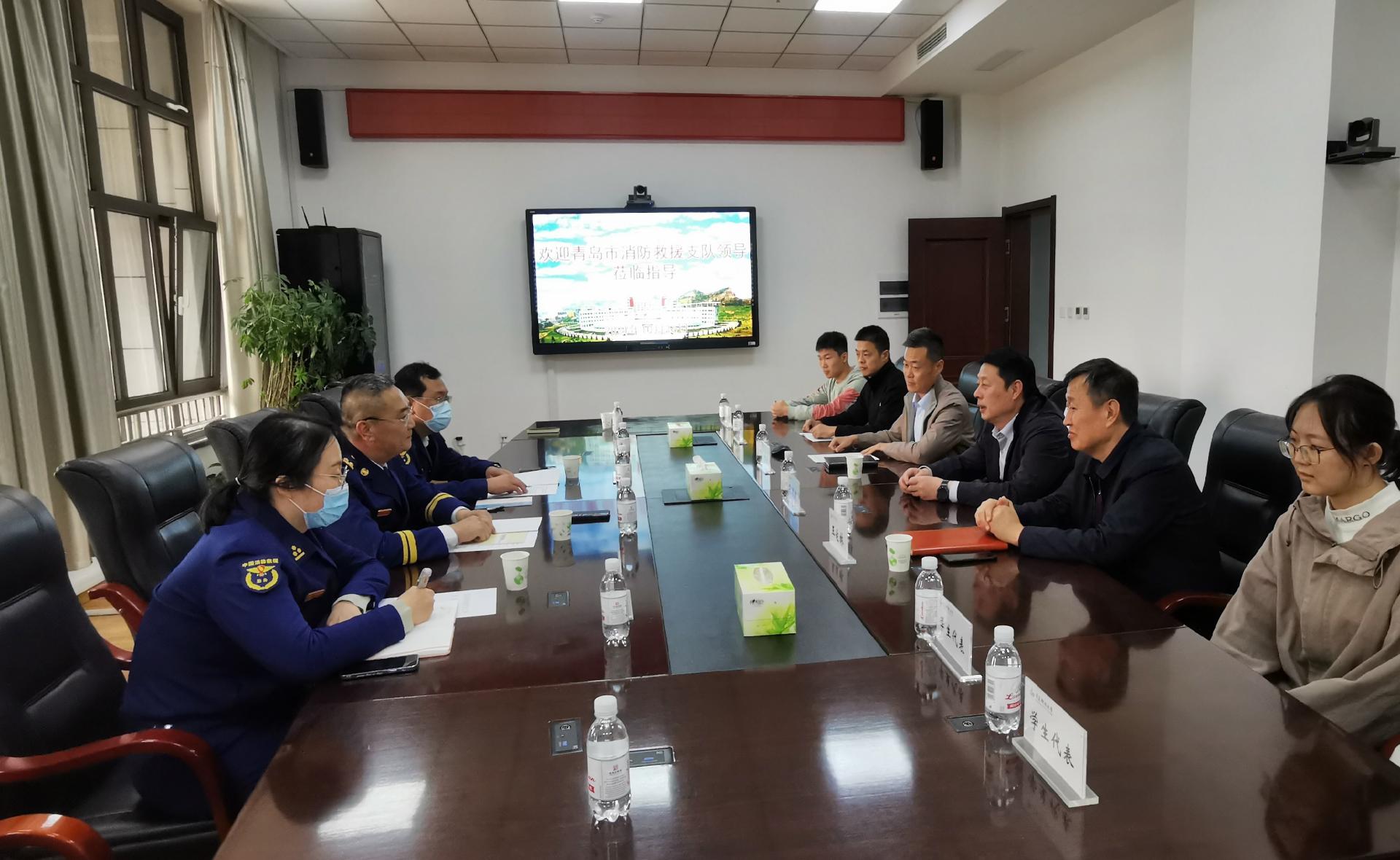 10月26日下午,青岛市消防救援支队副支队长于迎春一行来校调研校园消防工作。学校党委副书记张鸿波出席调研座谈会。
