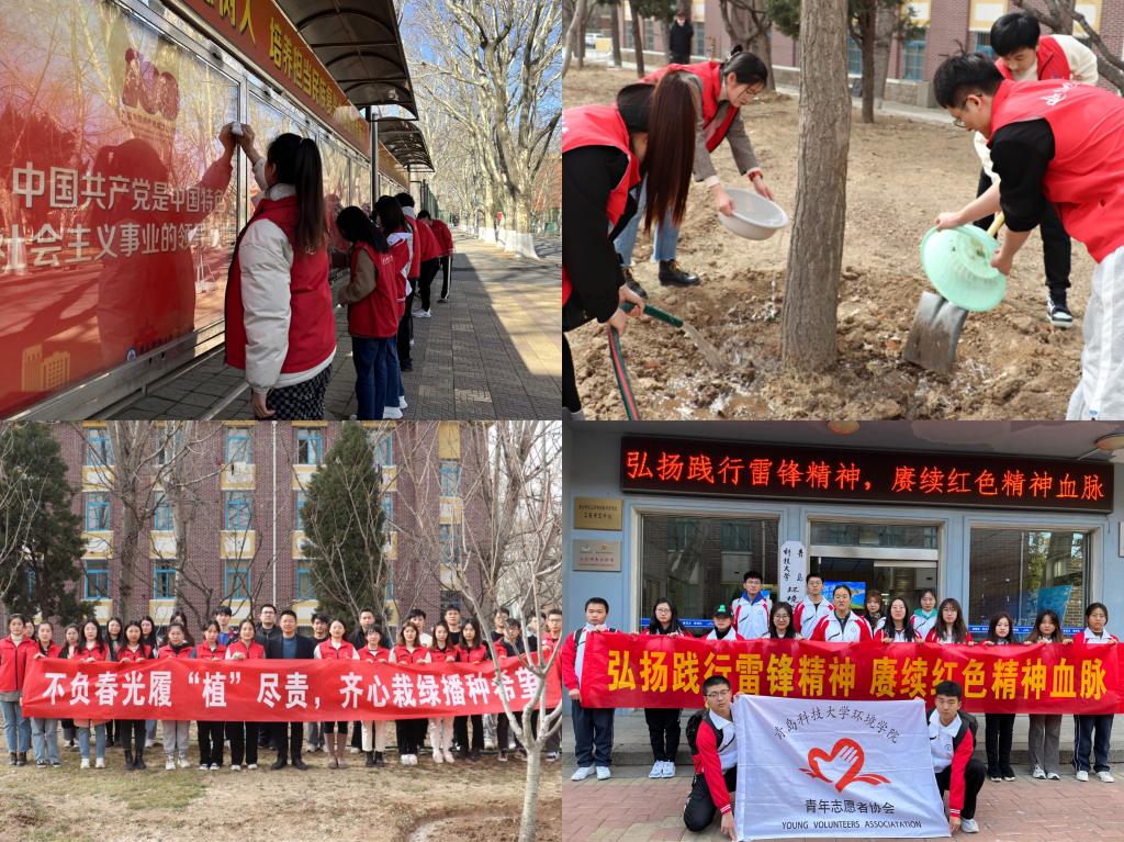 志愿我先行。3月4日,环境学院研究生党支部全体党员分为四组前往小五四广场数十颗樱花树下进行爱绿护绿浇灌树木志愿服务活动,并前往第二教学楼协助学校后勤部门检查消防安全设施。3月5日,本科生党支部进行了校园卫生清洁志愿活动,党员先锋深入校园的各个角落,对报栏、长椅、门框等设施进行清洁擦拭,为建设美丽校园献出自己的力量。