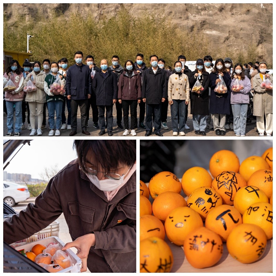 众志成城,温情暖心慰问,宣传引导突出“细”。4月2日上午,学院在南十宿舍楼下举行水果发放仪式,为每个数理学子发放水果。“愿你‘苹’安,‘香’守相望、战疫‘橙’功”,配合别具匠心的抽盲盒形式,让学生感受老师们的心意,给予学生前行的坚定与相伴的温暖。