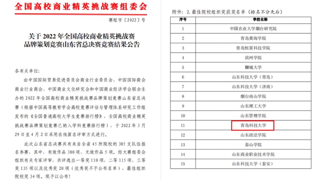 日前,2022年全国高校商业精英挑战赛品牌策划竞赛山东省总决赛落下帷幕。经管学院代表队共斩获省级一等奖3项、二等奖4项、三等奖6项,学校获评“最佳院校组织奖”。