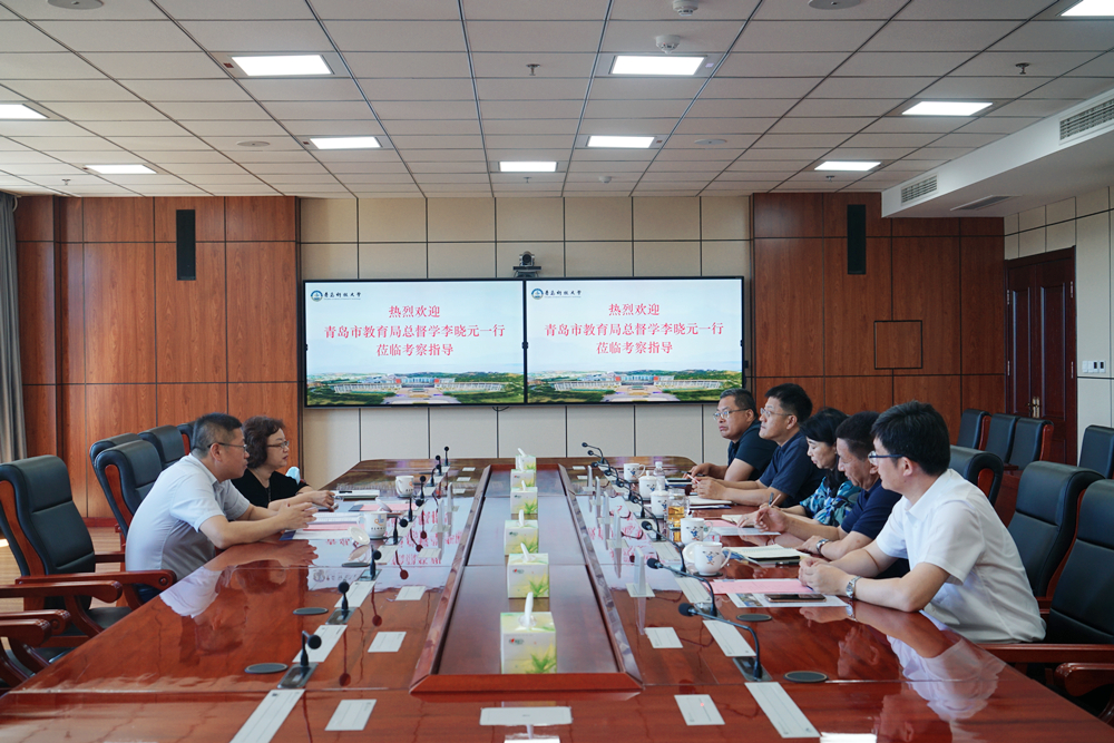8月17日上午,青岛市教育局总督学李晓元、高教处处长孙喜莲一行来365英国上市公司官网调研交流。调研座谈会在崂山校区综合服务楼6015会议室举行,学校党委副书记沈文青出席座谈会。