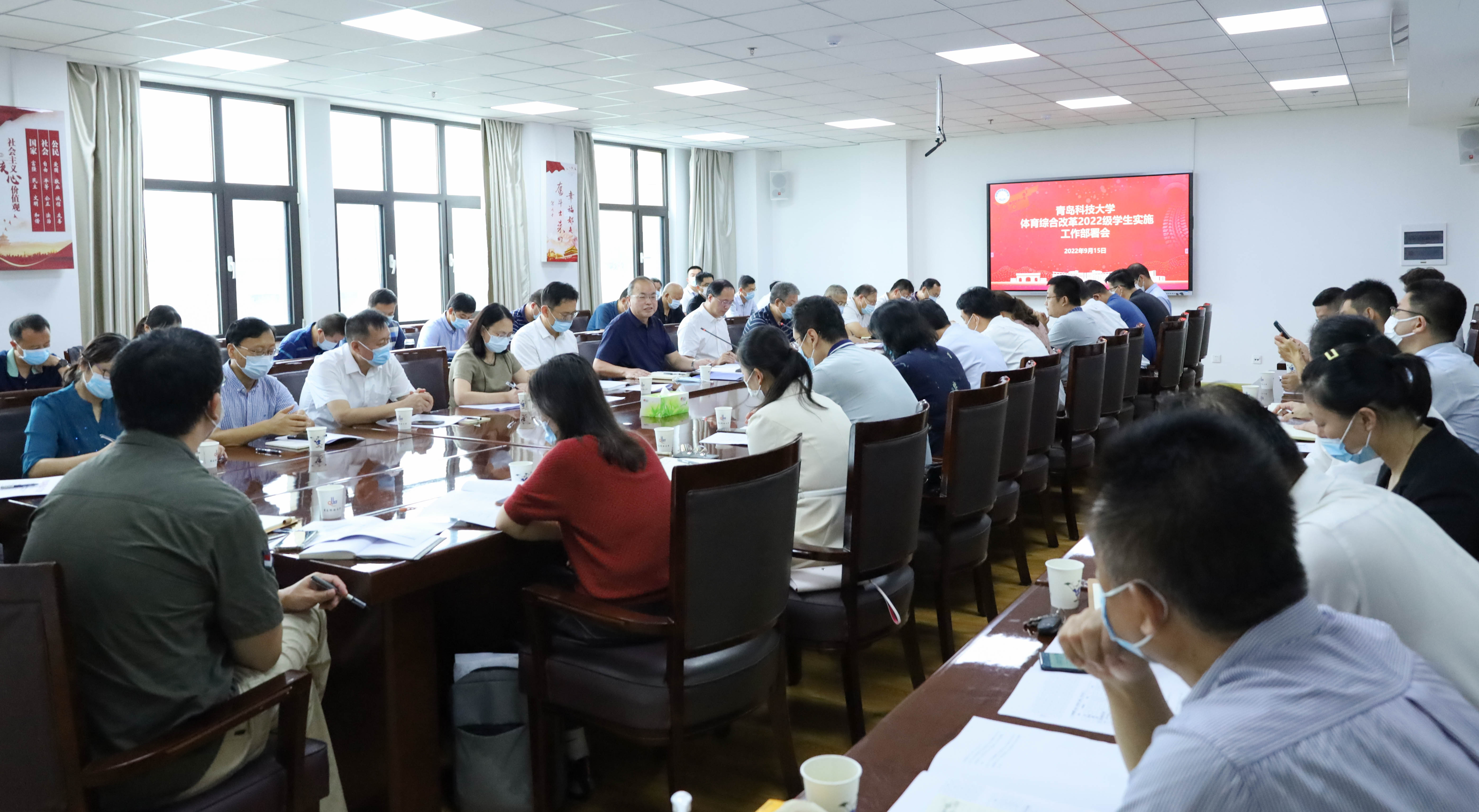 9月15日上午,学校体育综合改革2022级学生实施工作部署会在崂山校区综合服务楼3015会议室召开。学校体育综合改革工作小组组长、党委常委、副校长丁林,副校长罗细亮,党委常委、宣传部部长张洪坤出席会议。