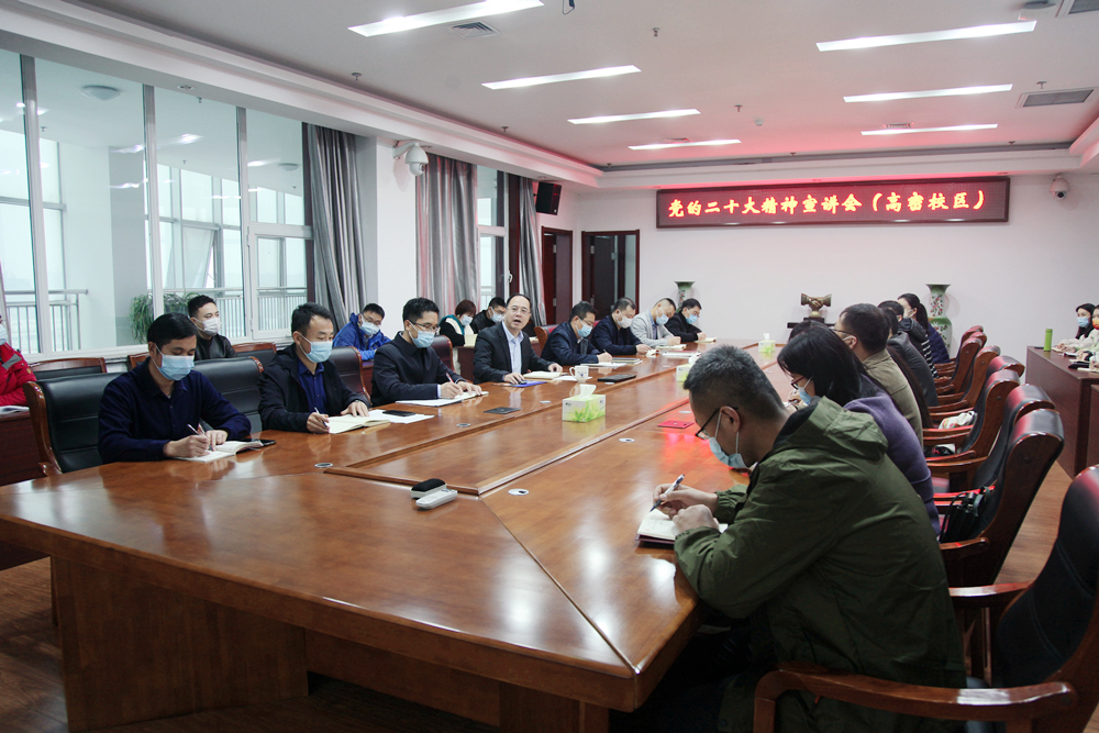 为深入学习宣传贯彻党的二十大精神,让广大党员师生学深、悟透、做实,11月22日上午,学校党委常委、副校长罗细亮到高密校区开展党的二十大精神宣讲,校区全体支部书记、辅导员、学生代表参加了会议,校区负责人张青山主持会议。