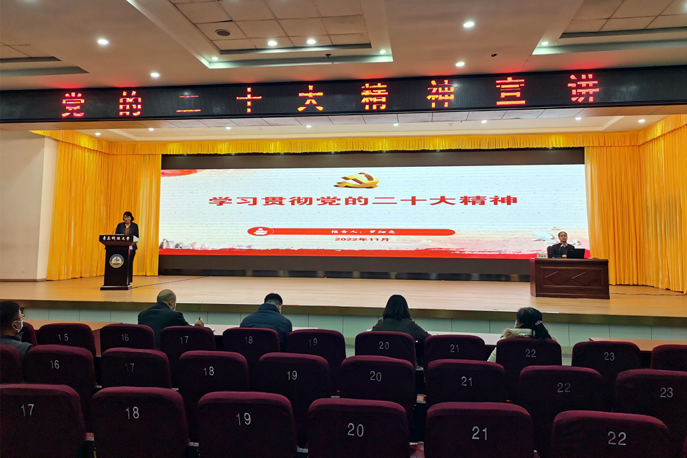 为深入学习贯彻党的二十大精神,根据学校关于党的二十大精神学习宣传要求,11月29日,学校党委常委、副校长罗细亮在崂山校区第二报告厅为教务处、国资处、网信办全体党员和数理学院、环境学院领导班子及支部书记宣讲党的二十大精神。国有资产与实验室管理处处长于彦丽主持宣讲会。
