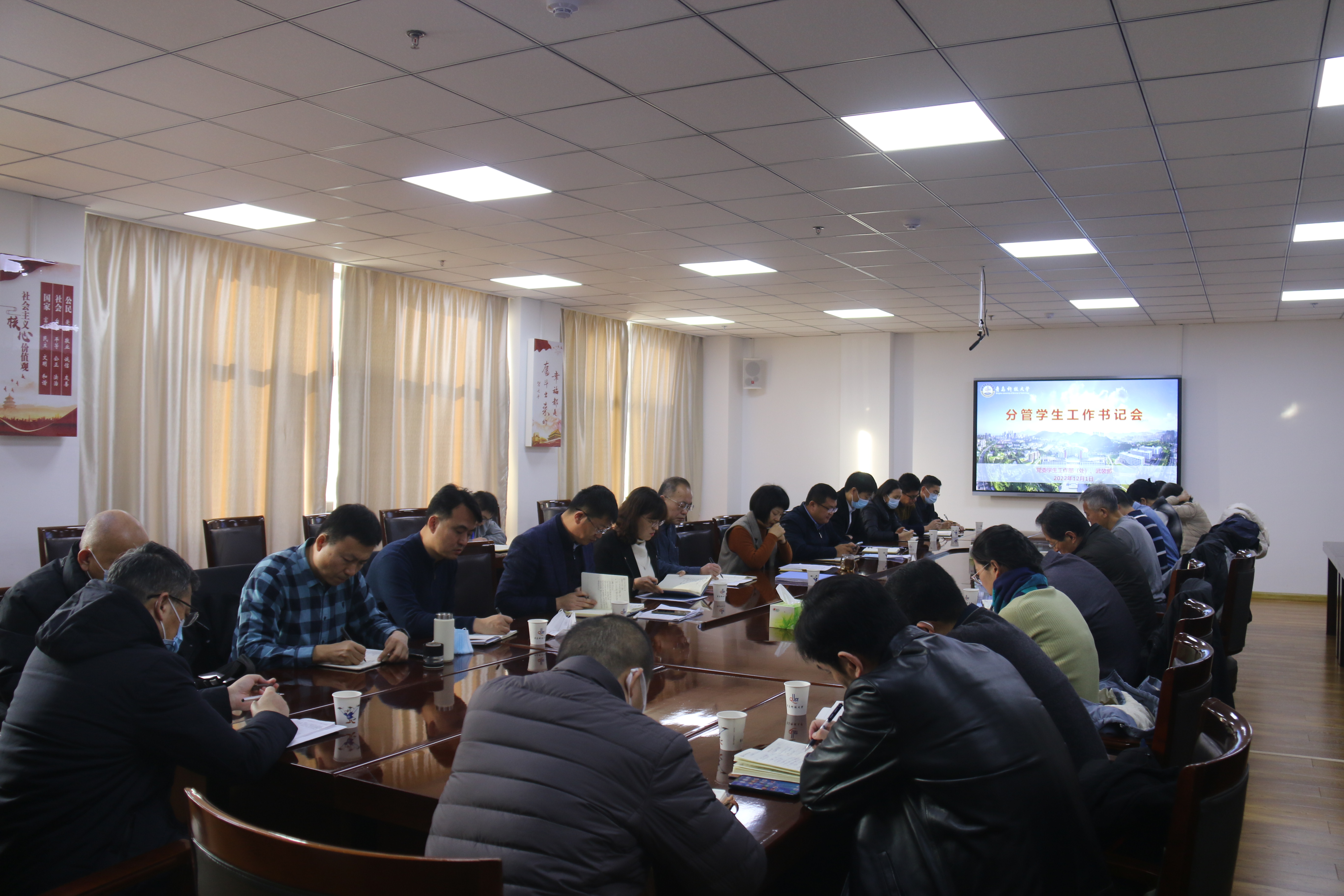 12月1日,学校在崂山校区综合服务楼3015会议室召开分管学生工作书记会。党委常委、副校长丁林,党委常委、统战部部长秦姣出席会议并讲话。学生工作处处长王丽主持会议。
