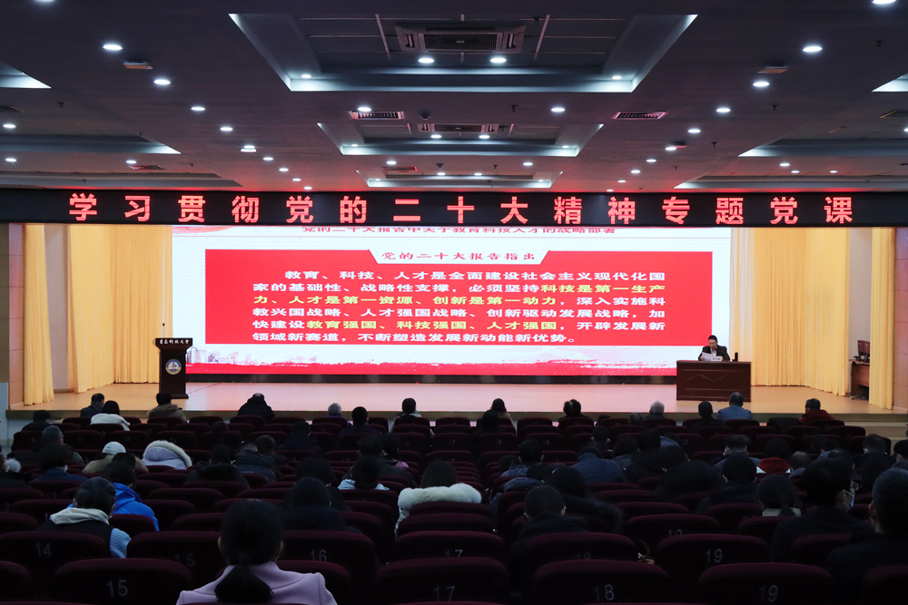 为深入学习贯彻党的二十大精神,12月1日下午,学校党委常委、副校长吕万翔在崂山校区第二报告厅以“学习贯彻党的二十大精神,推动学校‘特色鲜明、走在前列’谱新篇”为主题为分管联系单位上党的二十大精神专题党课。