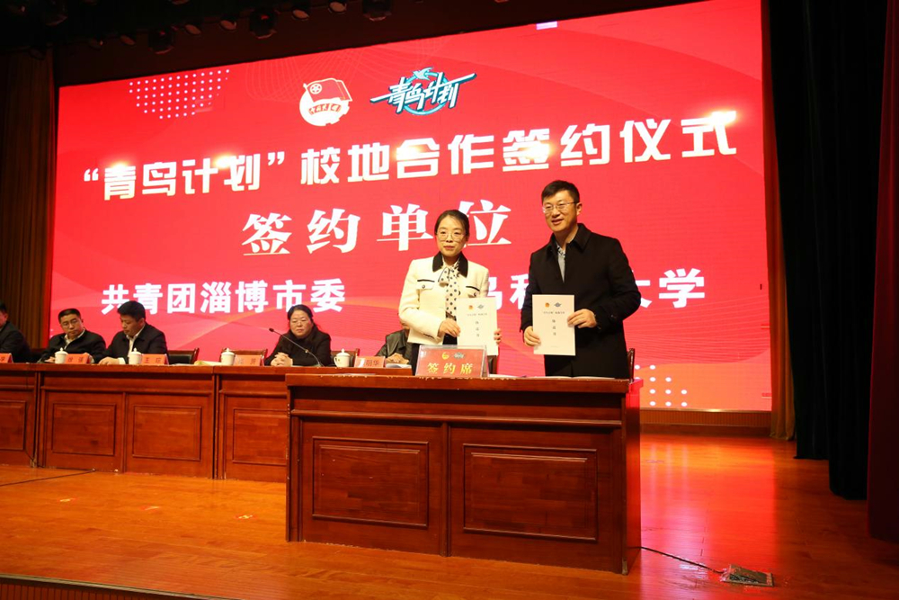 为全面推进“共青团促进大学生就业行动”,2月23日至25日,校团委与淄博团市委联合举办“青鸟计划”高校学子“来淄体验”化工专场活动,淄博团市委书记徐强、淄博团市委副书记王琮、临淄区委副书记赵学、临淄区政府副区长崔赟、临淄团区委书记张敏,学校团委书记刘跃宁出席活动,共同签订了“青鸟计划”校地合作协议,我校73名师生参与活动。