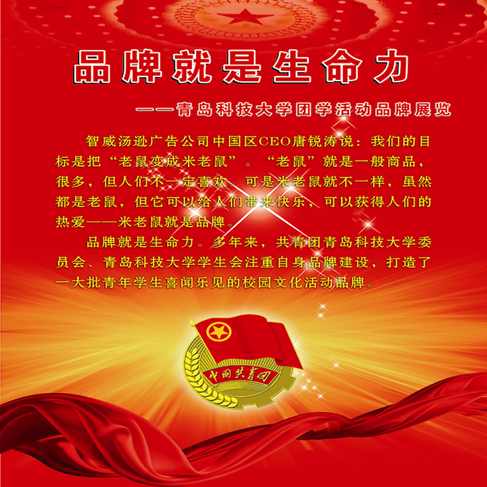 为充分展示学校“第二课堂”活动成果,提高学校团学活动的影响力和美誉度,校团委在四方校区文化长廊、崂山校区图书馆大厅举行“品牌就是生命力”和“大众创业万众创新”图片展。
