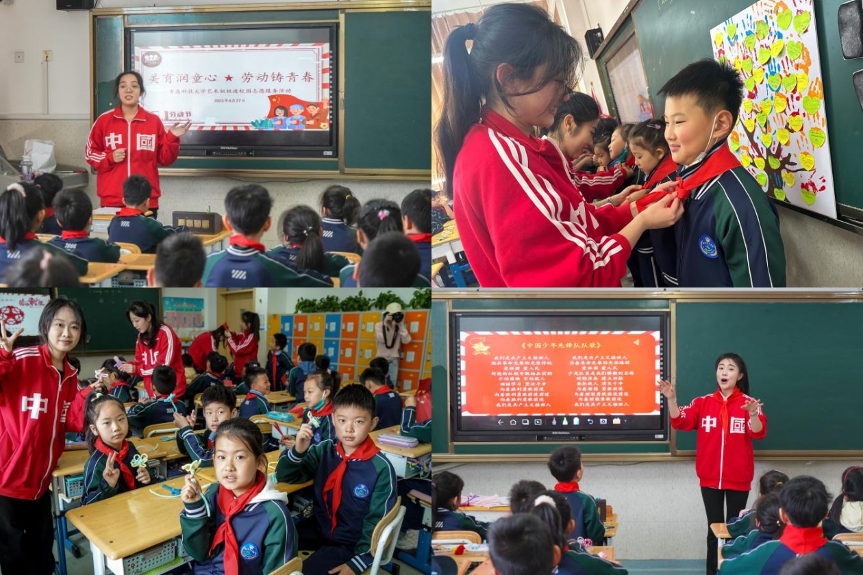 艺术学院团委开展“弘扬五四精神 争做有为青年” 五四主题教育活动。组织“艺术姐姐”志愿服务队走进崂山区育才学校开展“美育润童心·劳动铸青春”五四主题教育活动。开展“弘扬五四精神”主题团日活动,组织青年学生观看红色电影、齐唱红色歌曲、共做梦想之树等活动,引领广大学生弘扬“爱国、进步、民主、科学”五四精神,坚定听党话、跟党走的理想信念。