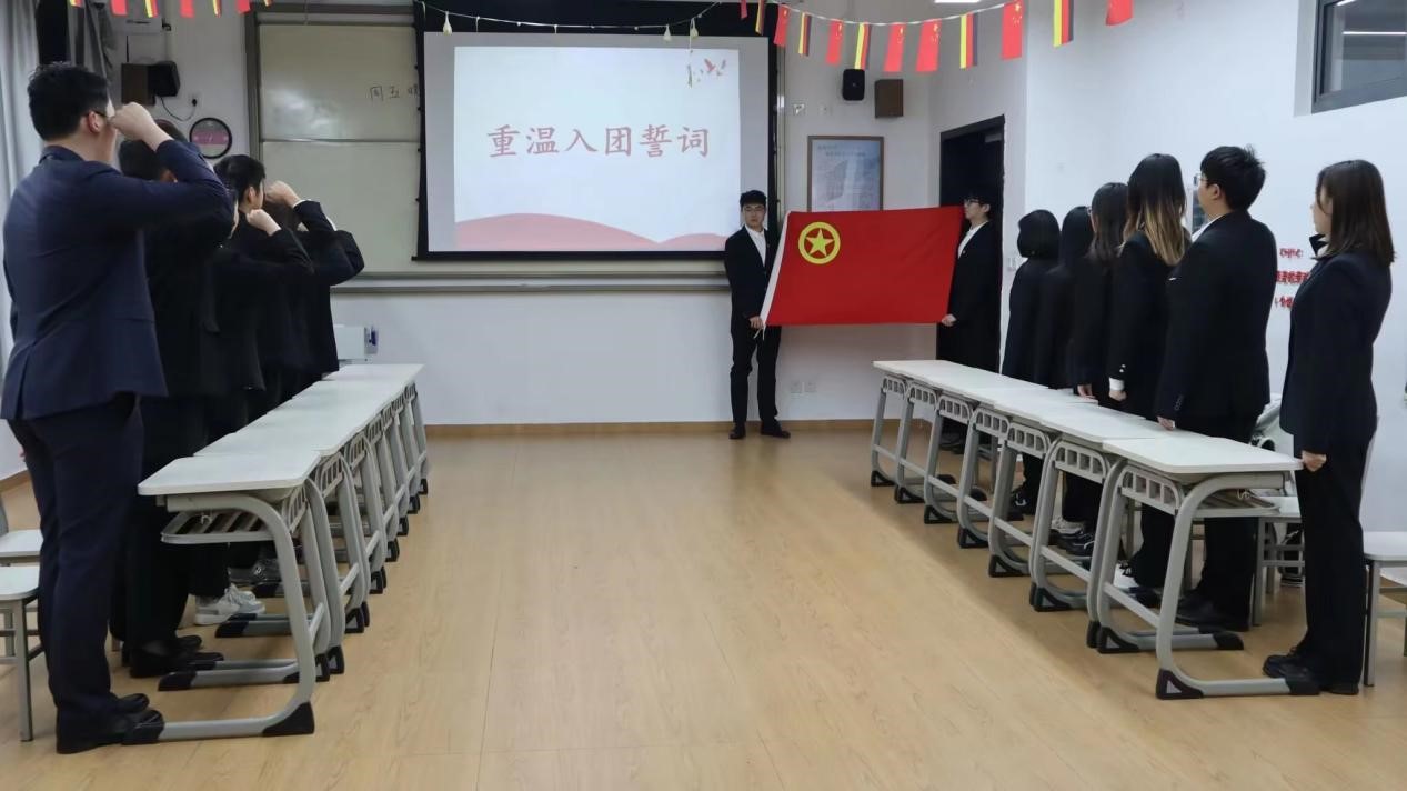 中德校区团委开展“重温入团誓言,牢记青春使命”五四青年节活动。组织团员青年重温入团誓词,团员青年们高举右拳,在鲜艳的团旗下庄严宣誓,铿锵有力的誓词回荡在每一位团员青年的心中,坚定的目光和铮铮的誓言展现出科大青年积极向上、朝气蓬勃的青春风采。