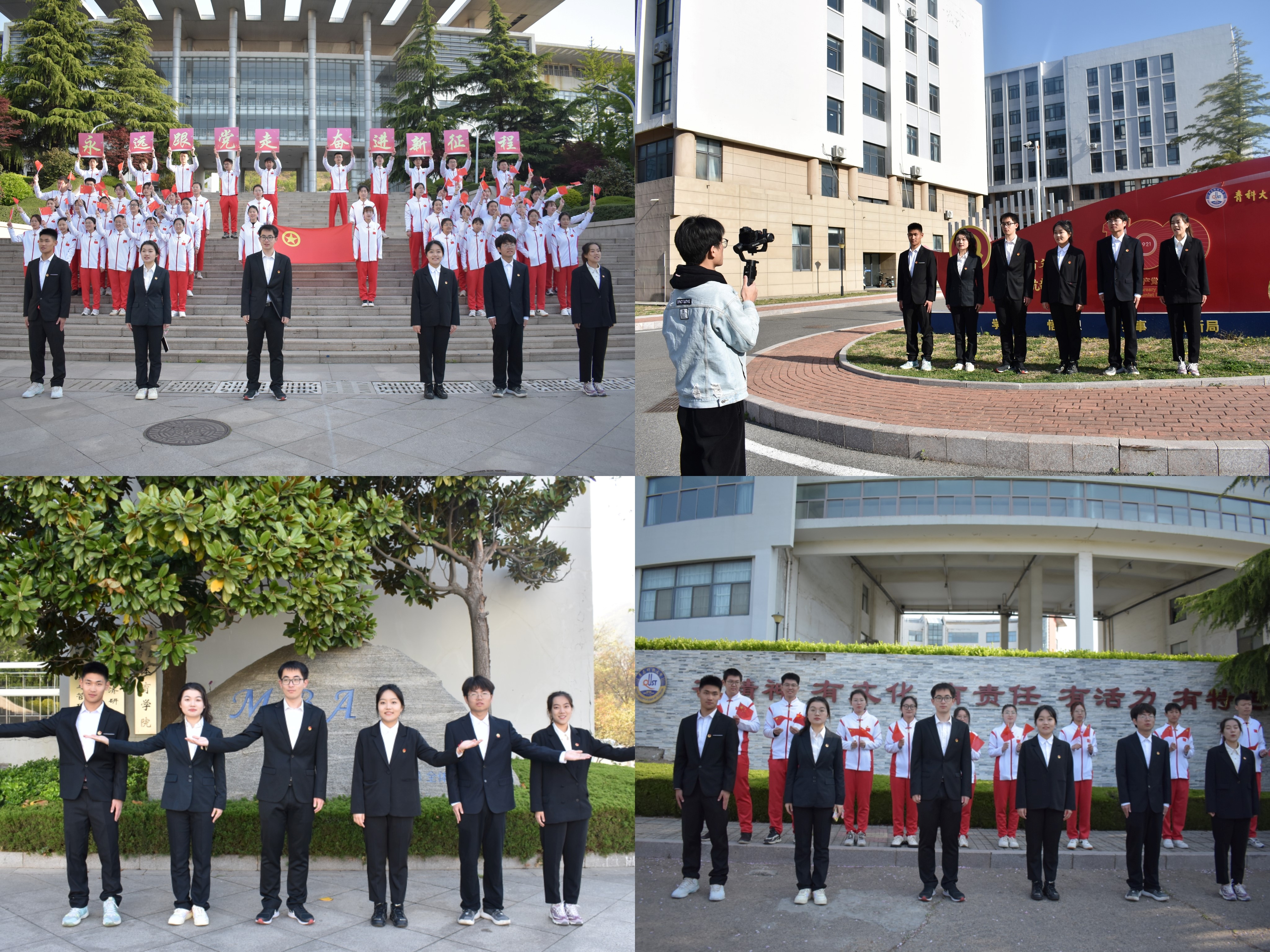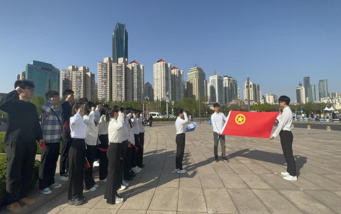 马克思主义学院团总支前往青岛市五四广场开展“追寻先贤足迹,弘扬五四精神”主题团日活动,重温入团誓词,追忆入团初心,对活动过程中沿途经过的红色地标进行特色宣讲,引导广大团员青年大力弘扬五四精神,做新时代的追梦人。