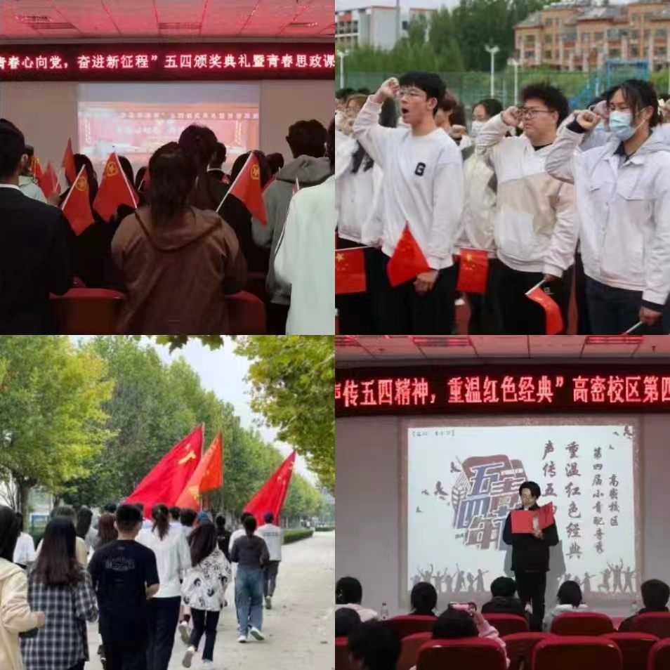 高密校区团委开展“赓续五四薪火,凝聚青春力量”主题教育活动。通过开展“昂扬奋进中国梦,砥砺前行新青年”主题演讲活动,共同回顾激荡人心的历史时光;开展“五四精神,薪火相传”青年长跑活动,赓续红色血脉,以奔跑奋斗的姿态抒发拳拳爱国之情,焕发出青春正能量;开展“燃五四星火,谱青春华章”五四朗诵活动,融情于诗、融情于诵,产生强烈的情感共鸣,进一步坚定“永远跟党走”的理想信念。
