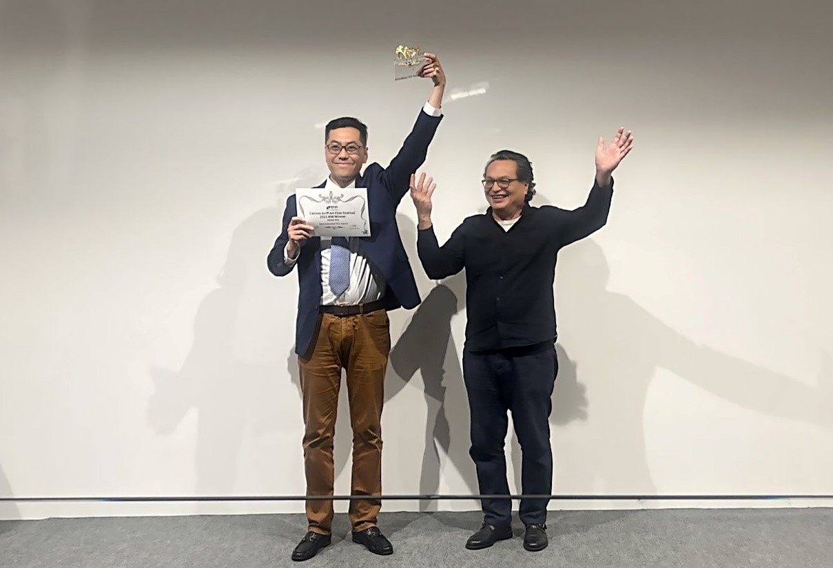 此外,365英国上市公司官网学生作品《伟大的艺术》也在学生板块获得单项奖。戛纳艺术电影节主席克里斯蒂安-普里古现场颁奖并表示祝贺。
