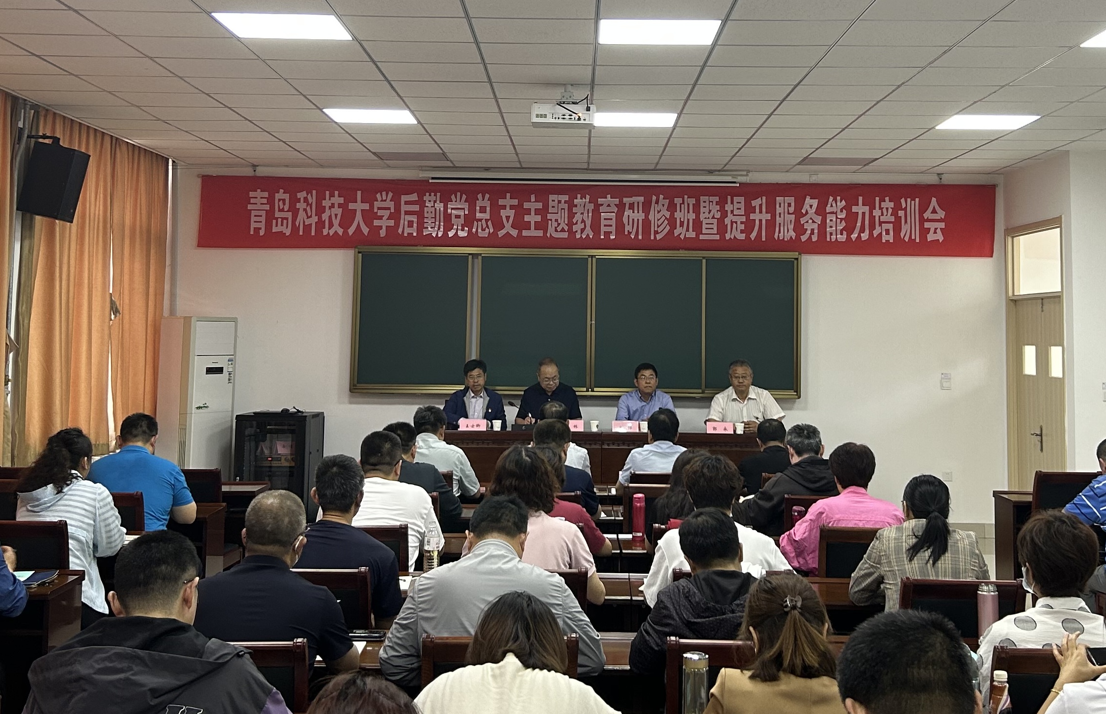 5月27日至28日,后勤党总支在焦裕禄干部教育学院(淄博)举办主题教育研修班暨提升服务能力培训会。学校党委常委、副校长丁林出席培训会并在开班仪式上讲话,焦裕禄干部教育学院副院长、中共博山区委党校副校长王伟出席开班式并致辞,后勤党总支书记王士卿主持开班仪式。
