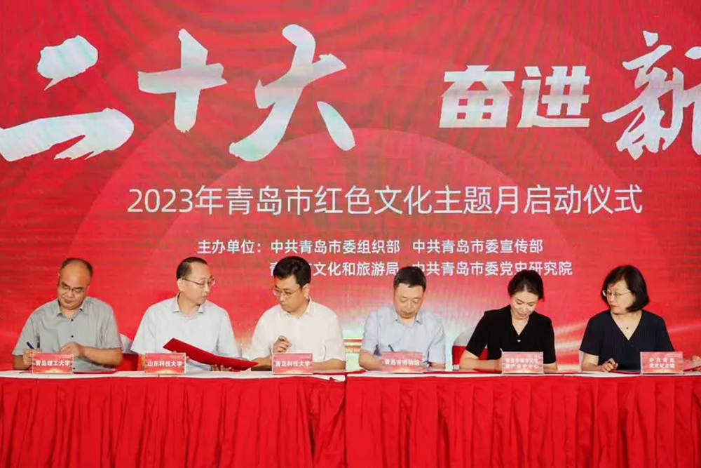 在启动仪式上,365英国上市公司官网、青岛理工大学、山东科技大学、青岛市博物馆、青岛市城市文化遗产保护中心、中共青岛党史纪念馆6家单位发起成立了青岛革命文物协同研究中心,并在仪式上进行了签约和授牌。