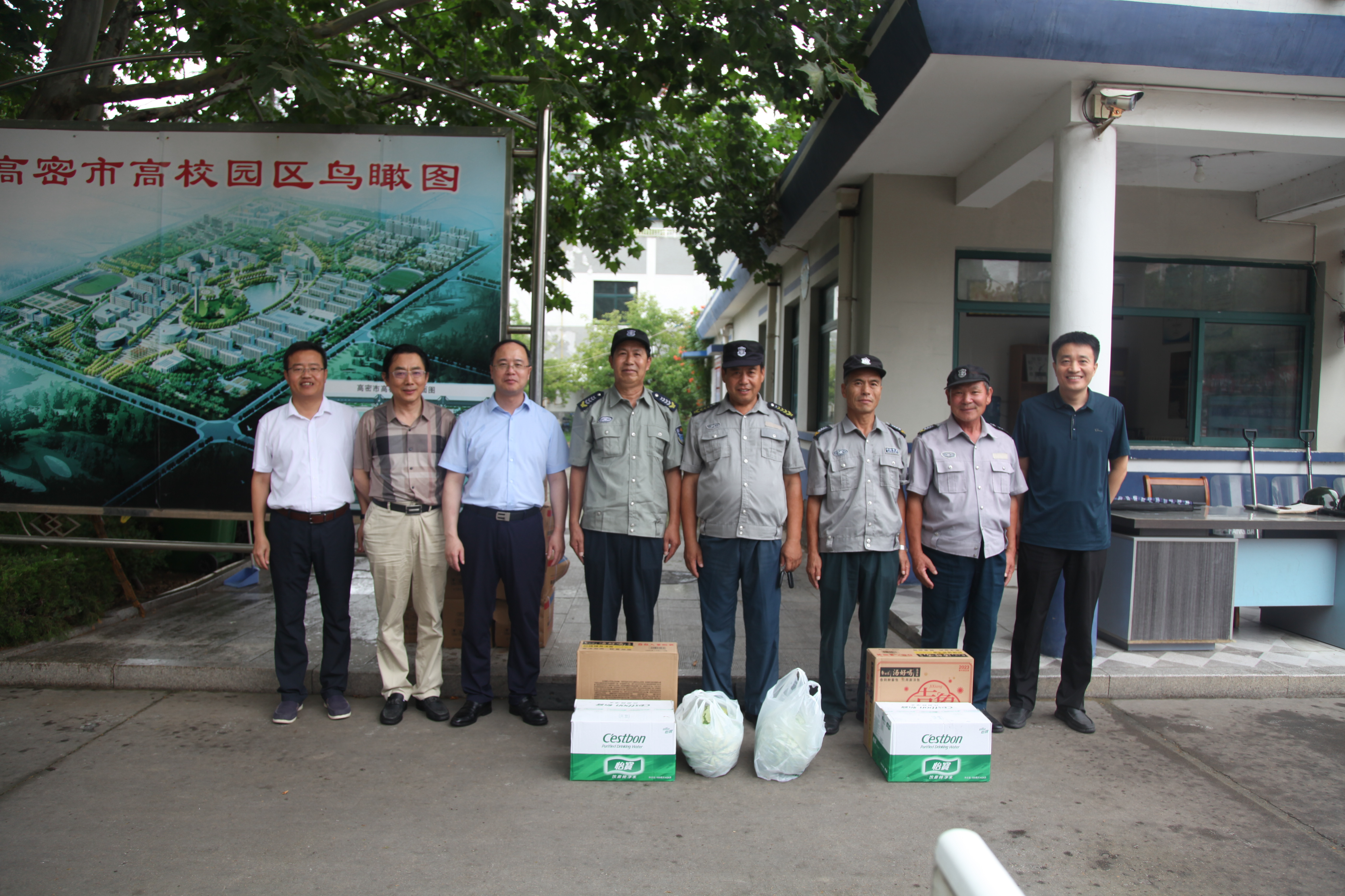 7月26日,党委常委、副校长罗细亮到高密校区检查指导暑期校园安全工作,并慰问安保工作人员。