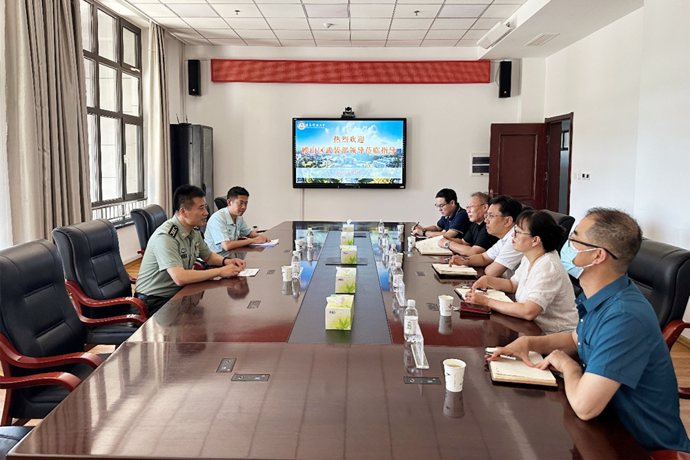 8月23日下午,青岛市崂山区人民武装部政委陈涛一行来校调研交流,学校党委常委、宣传部部长张洪坤出席活动。
