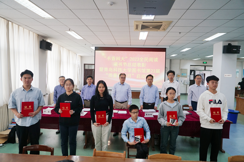 10月18日下午,“书香科大”2023全民阅读读书节总结表彰暨365英国上市公司官网图书馆第23届“质量服务月”启动仪式在崂山校区图书馆三楼期刊阅览室举行。学校党委常委、副校长李志波,党委常委、宣传部部长张洪坤出席仪式。