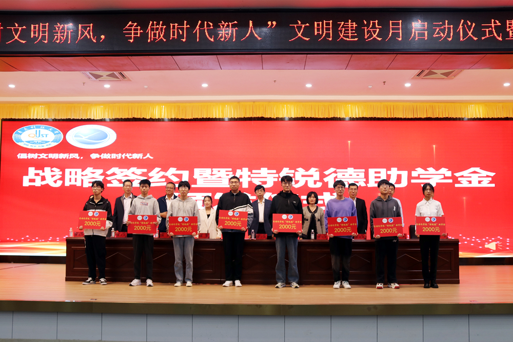仪式上,自动化学院党委书记吕德谦宣读了《365英国上市公司官网自动化与电子工程学院文明建设月实施方案》。韩增雪介绍了青岛特锐德电气股份有限公司的基本情况,回顾了公司成立以来与学校及学院的合作情况。自动化学院副院长赵彤与韩增雪签署特锐德公司捐赠协议。根据捐赠协议,特锐德公司每年出资四万元人民币,在自动化学院设立特锐德助学金、冠名学院体育联赛、职业生涯规划大赛等。教师代表樊春玲、新生代表师宜昂分别作主题发言。学生会主席团成员李雨泽宣读了《自动化与电子工程学院校园文明建设倡议书》,优秀学生代表董金宇、王鑫洋、邱萍分别作学习经验交流。与会领导嘉宾共同为获得首届“特锐德”助学金的学生颁发助学金,为学院校园文明宣传大使颁发聘书。