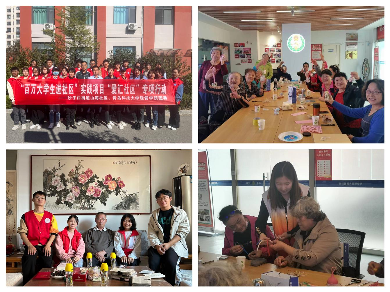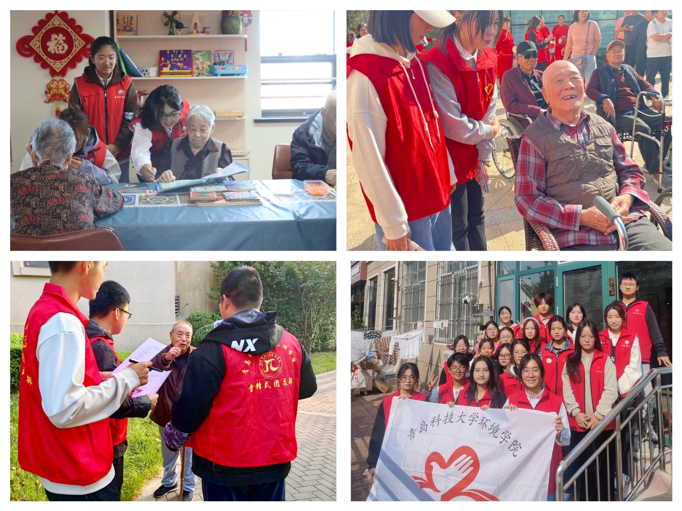 温暖奉献,志愿孝老。数理学院“雷锋团支部”赴金家岭街道蓝岸馨苑社区开展“金晖助老”活动,志愿者通过发放宣传材料,面对面为居民讲解口腔健康与全身健康的相关信息,宣传口腔健康常识;经管学院“暖心愿”爱心公益协会走进山海社区,聚焦老人切实需求,共读一本书,开展防诈骗宣传,制作“茱萸”香包,在“柴米油盐”“家长里短”中受教育、长才干、作贡献;环境学院青年志愿者协会开展“九九重阳节,温暖老人心”祥红敬老院志愿服务活动,积极弘扬爱老敬老的传统美德;化学院志愿队组织志愿者赴前哨敬老院开展“浓浓敬老,情暖重阳”志愿服务活动,为老人传递社会温情;化工学院志愿队唠家常、做清洁、展才艺,为敬老院的老人们送上诚挚的问候和关怀;海洋学院服务队赴市北区洛阳路街道商丘路社区,对老人家中用火用电情况进行安全隐患排查,并帮助老人清理卫生,引得老人们连连称赞;高分子学院“橡尚志愿者”前往水清沟街道社区敬老院,进行防诈宣传、健康宣讲、亲情陪伴,展现出青年志愿者温暖有爱的奉献精神;马克思主义学院爱心服务队开展“日行一孝”活动,把孝老爱亲的传统美德延续到日常生活中。