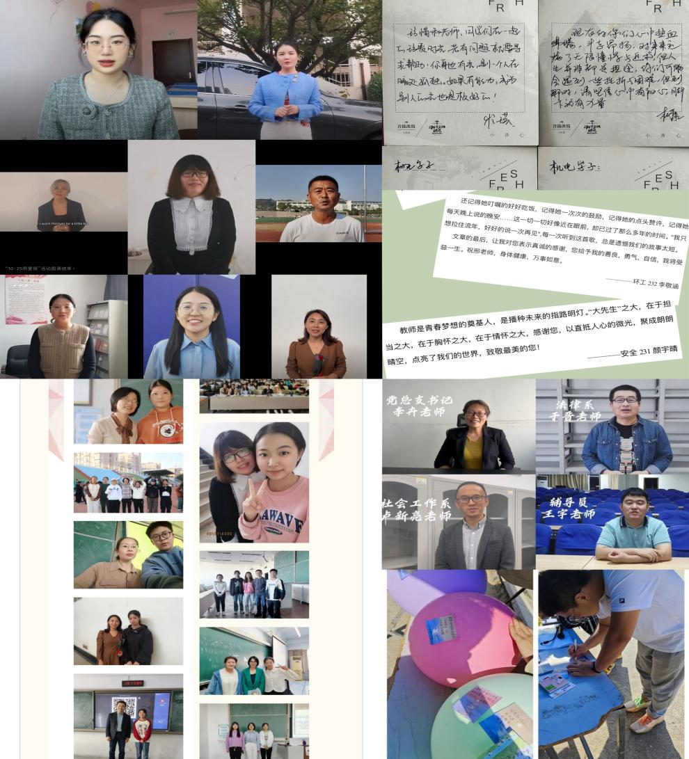 以德育心。学校心音心理健康协会组织开展“那些年感受到的善意”,线上线下捕捉师生之间爱的瞬间,塑造和谐友爱的校园氛围。环境学院以“我与老师的故事”为题征集师生之间难忘的感人故事,以笔传情,纸短情长,感恩于心,回报于行。材料学院、机电学院开启“时光纸飞机”活动,为师生搭建互诉“衷肠”的桥梁,师生双方借助一张张明信片表达教、学感想,老师引导学生树立正确的世界观、人生观、价值观,学生帮助老师提高育人质量。法学院老师以视频为媒介向大一学生表达关爱和祝福,激励同学们大胆创新创造,怀揣梦想开启充实、精彩的大学生活。