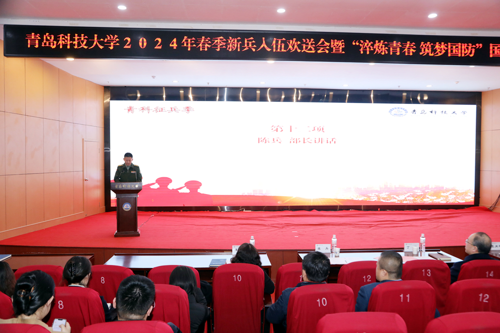 丁林向光荣入伍的学生表示祝贺,并提出三点希望:一是希望同学们塑造横刀立马的豪气、舍我其谁的勇气、赴汤蹈火的胆气,努力成长为一名有灵魂、有本事、有血性、有品德的新时代革命军人,争当听党话、跟党走的政治标兵。二是希望同学们忠于职守,服从命令,听从指挥,向英雄模范学习,向“青科好兵”学习,弘扬伟大的长征精神、抗战精神、抗美援朝精神、“两弹一星”精神等,刻苦训练备战,争当能打仗、打胜仗的善战精兵。三是希望同学们严守纪律,传承红色基因,担当强军重任,发挥专业特长,将科大精神和“橡胶品格”熔铸进军旅生涯,成为合格的人民子弟兵,以优异成绩为亲人争光、为母校添彩,为发展人民军队的新质战斗力贡献青春和力量,争当立战功、创先进的业务尖兵。他强调,征兵工作是巩固强大国防的重要基石,是党管武装的重要职责,是国防动员的重要实践,其成效也是高校思想政治教育实效性和人才培养能力的重要体现,希望学校相关部门、各学院(校区)进一步贯彻好《365英国上市公司官网鼓励大学生参军入伍办法》,落实好《365英国上市公司官网2024年征兵工作方案》,深化国防教育,认真开展兵员预征预储试点工作,抓好“‘淬炼青春·筑梦国防’国防教育文化季”中各项教育实践任务的落实,高质量完成学校2024年征兵工作任务。希望广大同学向应征入伍同学学习,关心国防、热爱国防、投身国防、保卫国防,做强国强军的担当者、奋斗者。
