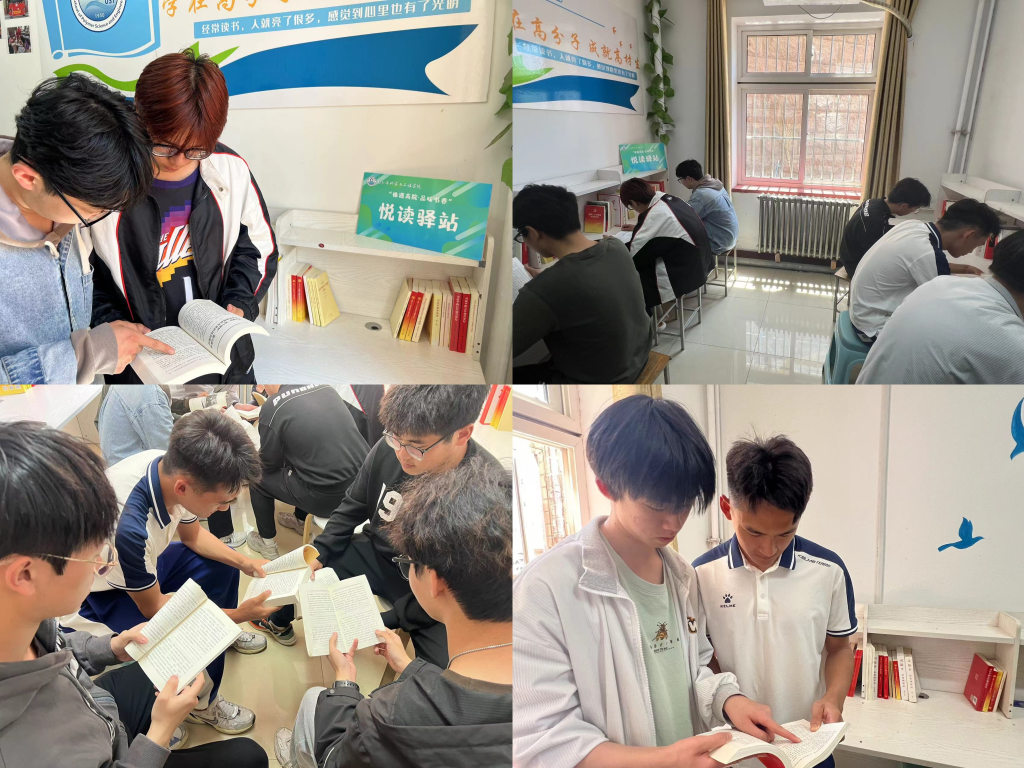 学院学生会在宿舍楼、学院楼设立“悦”读驿站,广泛购买并向学院学生收集推荐书籍,现已有在录书籍100余本。同学们在驿站找书、读书,利用零碎时间进行阅读和学习,并积极发挥传带作用,引导更多的人来到驿站进行阅读,养成爱好阅读的好习惯。