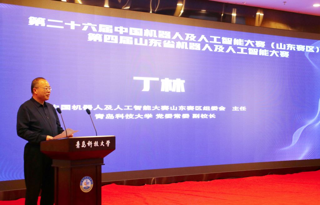 林培光代表山东省人工智能学会对赛事承办单位的精心筹备和各组委会成员、志愿者的辛苦付出表示感谢,向参加本届大赛的评审专家表示诚挚的问候,并对赛事在致力于搭建良好的科技创新赛事交流平台,提高学生的综合素质,引导和激励广大青年学生弘扬创新精神,推动学生参与机器人、人工智能科技创新实践等方面积极作用的发挥做了详细介绍。
