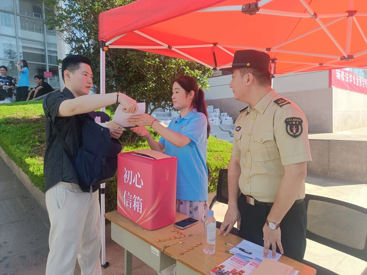 少年当有凌云志,不负韶华行且知。学院设置党员先锋岗,放置“初心信箱”,开展红色启蒙教育。现场收到入党申请书32份,入团申请书5份,一份份字迹工整的申请书,展现着同学们青春心向党的精神风貌。学生党员事无巨细地为新生讲解党员、团员发展的具体流程,分享自身入党、入团前后思想与行动上的变化,用淳朴的语言和行动充分发挥着榜样模范作用。学院还设置征兵政策宣传站,退伍士兵身着戎装详细讲解参军入伍的政治荣誉、学业保障、就业创业等,引导学生解了国家的征兵政策,增强国防意识,鼓励青年学生积极响应国家号召,投身国防建设。