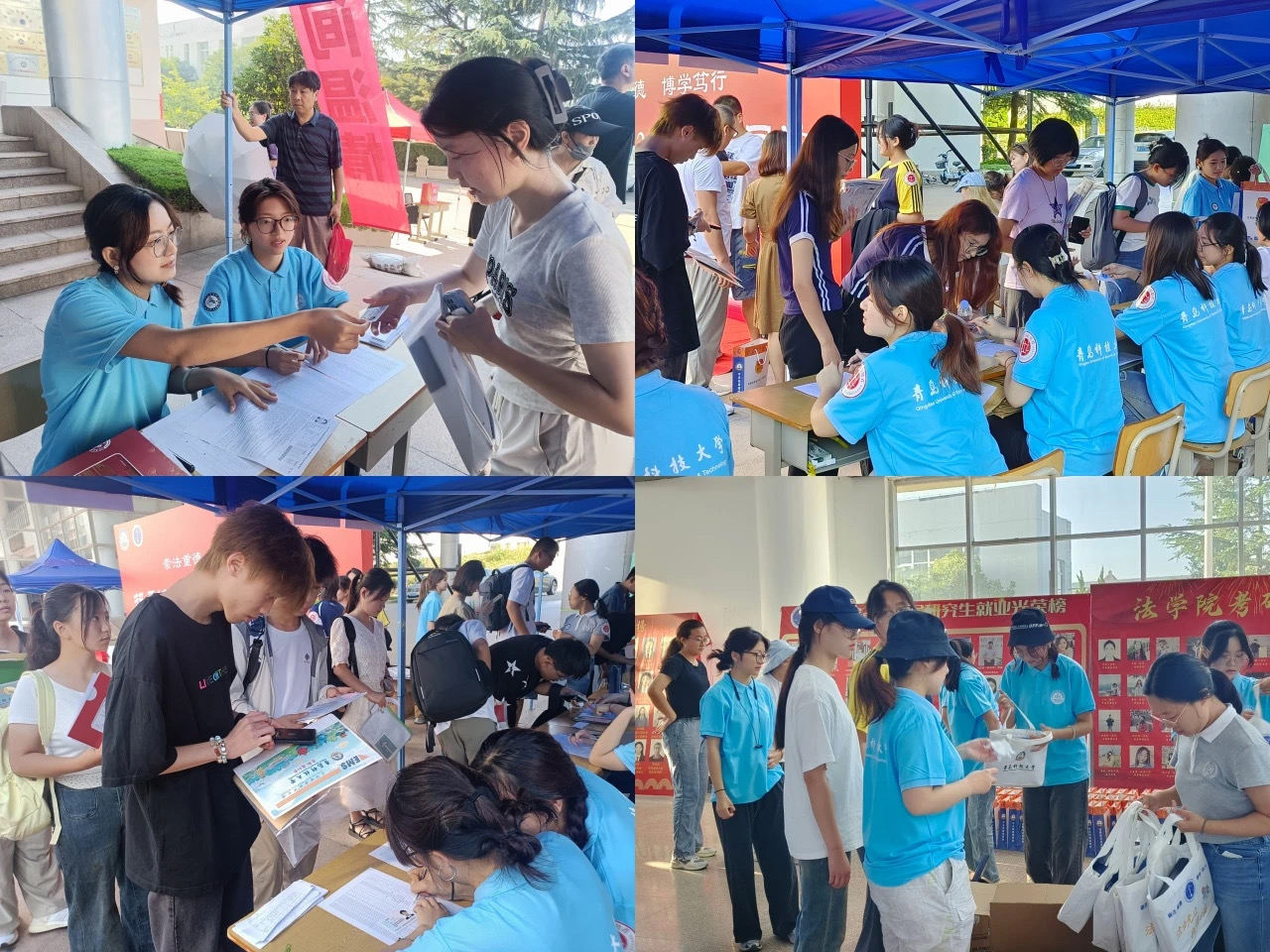 细针密缕备周全,亲切关怀暖心田。新生报到前,学院举办校园开放日活动,来自省内各地市的四十余位新生及家长代表走进学院,两位系主任全方位宣传学院专业相关情况,三位法学院优秀校友代表分享求学期间心得体会,积极搭建搭建家校合育新平台。迎新现场,迎新服务队的志愿者们、学生党员,科学分工,以饱满的热情、周到细致的服务,全力确保新生顺利报到。学院党政领导、辅导员、专业课教师、朋辈志愿者亲切耐心的回答新生及家长疑问,引领新生扣好大学的第一粒扣子。同时学院还精心为每一位新生准备了具有法学院特色的开学大礼包,包含定制獬豸钥匙扣、笔记本、小风扇、帆布包等物品,让初入法学院的新生们感受到了家的温暖,进一步增强了学生的归属感和自豪感。