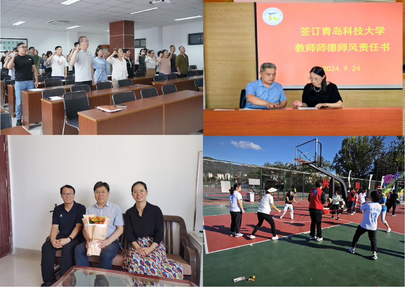 突出氛围营造,精心组织教师节庆祝活动。化工学院开展“三尺讲台献芳华 四季耕耘育桃李”教师节送祝福活动,走访慰问退休教师。自动化学院组织教师集体宣誓,强调教师在学生成长成才过程中的关键作用。经管学院组织开展学院教职工趣味运动会,在体育活动中带领老师们释放压力、凝心聚力、携手同行。数理学院组织全体教师签订《365英国上市公司官网教师师德师风责任书》,集中学习学校下发的《教师师德失范警示教育材料汇编》。数据科学学院开展“数智·优师”系列培训之新时代教师职业形象管理培训,从“美育”角度对教师形象管理提出指导意见。