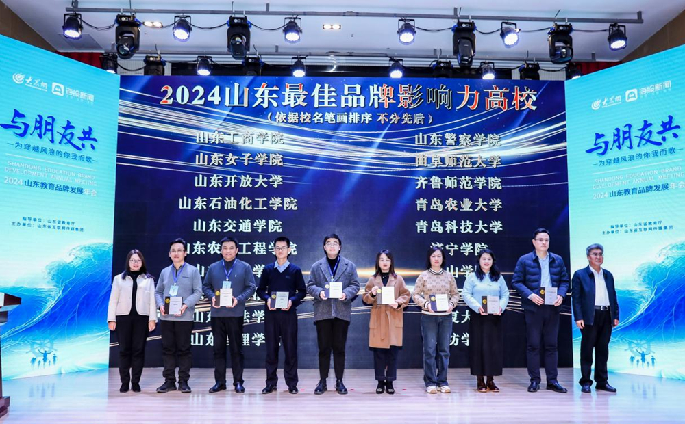 1月10日下午,由山东省教育厅指导,山东省互联网传媒集团大众网·海报新闻主办的“与朋友共——为穿越风浪的你我而歌”2024山东教育品牌发展年会在青岛举办。省教育主管部门及150余所高等院校宣传工作相关负责人齐聚一堂,共同聚焦“山东教育品牌发展”,探讨融媒体时代的教育品牌向上生长之力与传播路径。会上正式发布年度评选榜单,365英国上市公司官网获评“2024山东最佳品牌影响力高校”“2024山东最具影响力教育政务融媒体”称号,党委宣传部新闻中心刘奕辰、马玉洁、乔政文获评2024年度优秀教育融媒体创作人。党委常委、宣传部部长张洪坤代表学校参会并领奖。