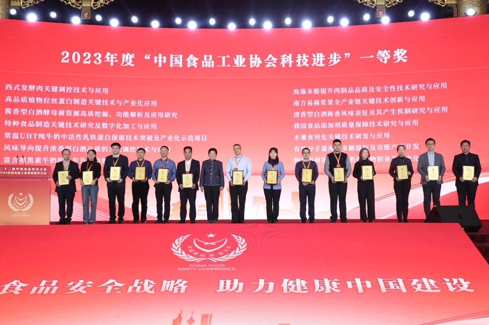 近日,由中国食品工业协会主办、中国食品安全报社承办的第二十二届中国食品安全大会暨2024全国食品工业科技进步大会在北京举行。大会颁发了2023年度中国食品工业协会科学技术奖,学校研究成果获中国食品工业协会科学技术奖一等奖1项、三等奖1项,王家林教授荣获中国食品工业科技创新奖。