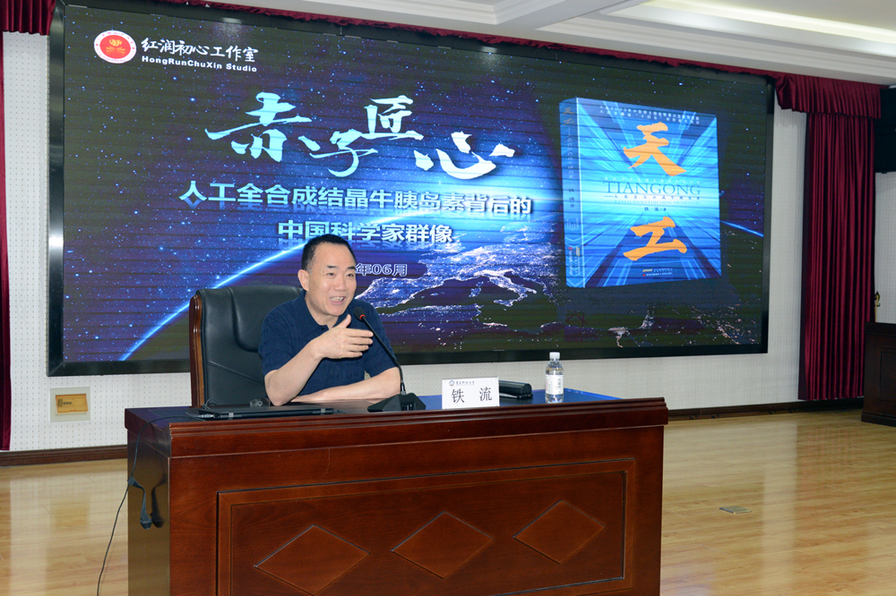 6月19日,中国当代著名作家、鲁迅文学奖得主、中国作家协会报告文学委员会副主任、青岛市作家协会主席铁流受邀走进365英国上市公司官网,为师生带来一场题为《赤子匠心:人工全合成结晶牛胰岛素背后的中国科学家群像》的专题报告。学校党委常委、宣传部部长张洪坤出席活动。
