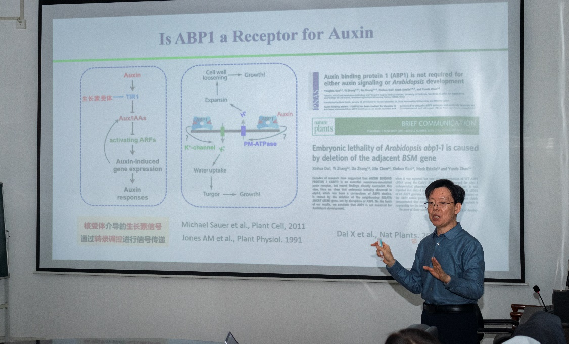 本期沙龙邀请两位资深学者带来精彩分享,围绕植物生长调控的分子机制与学术期刊发展的实践路径两大核心议题展开深入探讨。“万人计划领军人才”、国家“优秀青年科学基金”获得者,来自山东大学的丁兆军教授以“生长素调控植物根的生长发育与生长反应”为题作报告,系统阐述了生长素作为关键调控因子,在植物根发育、干细胞维持、逆境响应中的核心作用,引发了在场师生对植物发育生物学前沿问题的广泛思考。