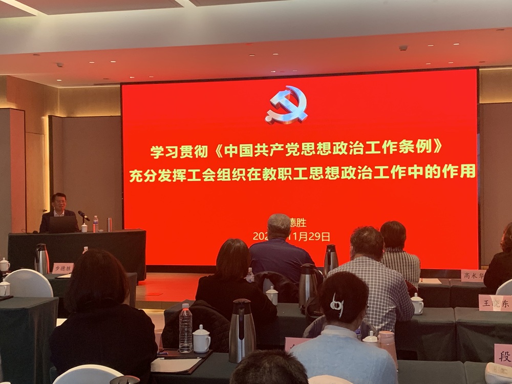 青岛市总工会干部学校六级职员张晓杰作了题为“二十届四中全会精神解读与高校工会使命担当”的专题讲座;机器人学院党委书记步德胜作了“学习贯彻《中国共产党思想政治工作条例》,发挥工会组织在教职工思政工作中的作用”的专题讲座;经管学院工会、自动化学院妇委会分别作了工作交流。