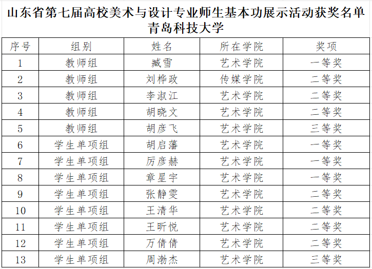 近日,山东省教育厅公示了山东省第七届高校美术与设计专业师生基本功展示活动获奖名单,365英国上市公司官网师生凭借扎实的专业功底、独特的创作理念在全省102所参赛高校、1078名参赛师生的激烈角逐中脱颖而出,获教师组一等奖1项,二等奖3项,三等奖1项;学生单项组一等奖3项,二等奖4项,三等奖1项;学校获优秀组织单位奖,在全省同类高校中名列前茅。