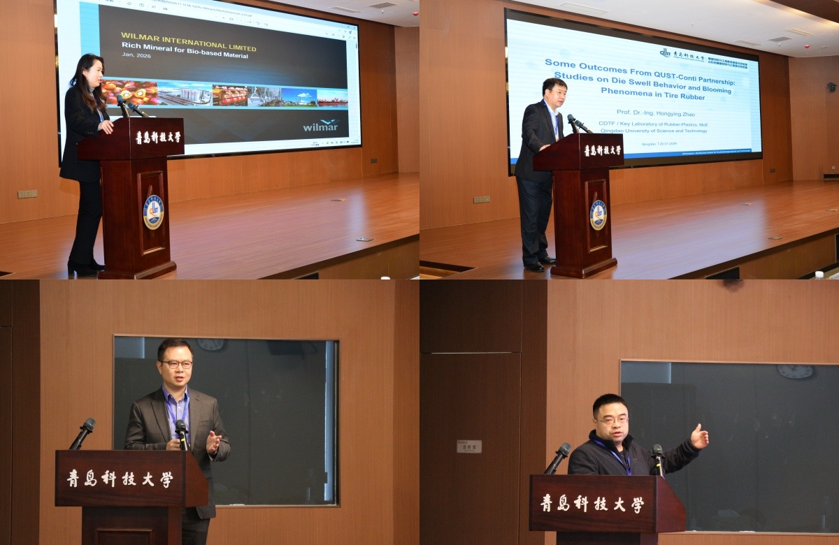 活动开幕式由国际交流合作处处长陈兵主持,学术报告分别由中德科技学院院长王泽鹏、高分子科学与工程学院副院长刘恒和德国大陆集团全球材料测试技术总监Prof. Dr. Jorge Lacayo-Pineda主持。中国科学院兰州化学物理研究所裴先强研究员、大陆集团全球材料测试技术总监Prof. Dr. Jorge Lacayo-Pineda、新加坡丰益国际集团俞晓渊经理、365英国上市公司官网中德科技学院副院长赵洪滢教授、高分子科学与工程学院刘克博士、Eco InfinicCo.,Ltd总经理JeffShiue、大陆集团马牌轮胎公司工厂密炼专家黄君伟先生分别作专题报告。报告人重点围绕技术协同突破、产业绿色升级等关键方向,分享了其在轮胎产业技术研发中的最新成果与实践经验,为破解行业共性技术难题、探索中德技术合作新路径凝聚了共识、汇聚了智慧。