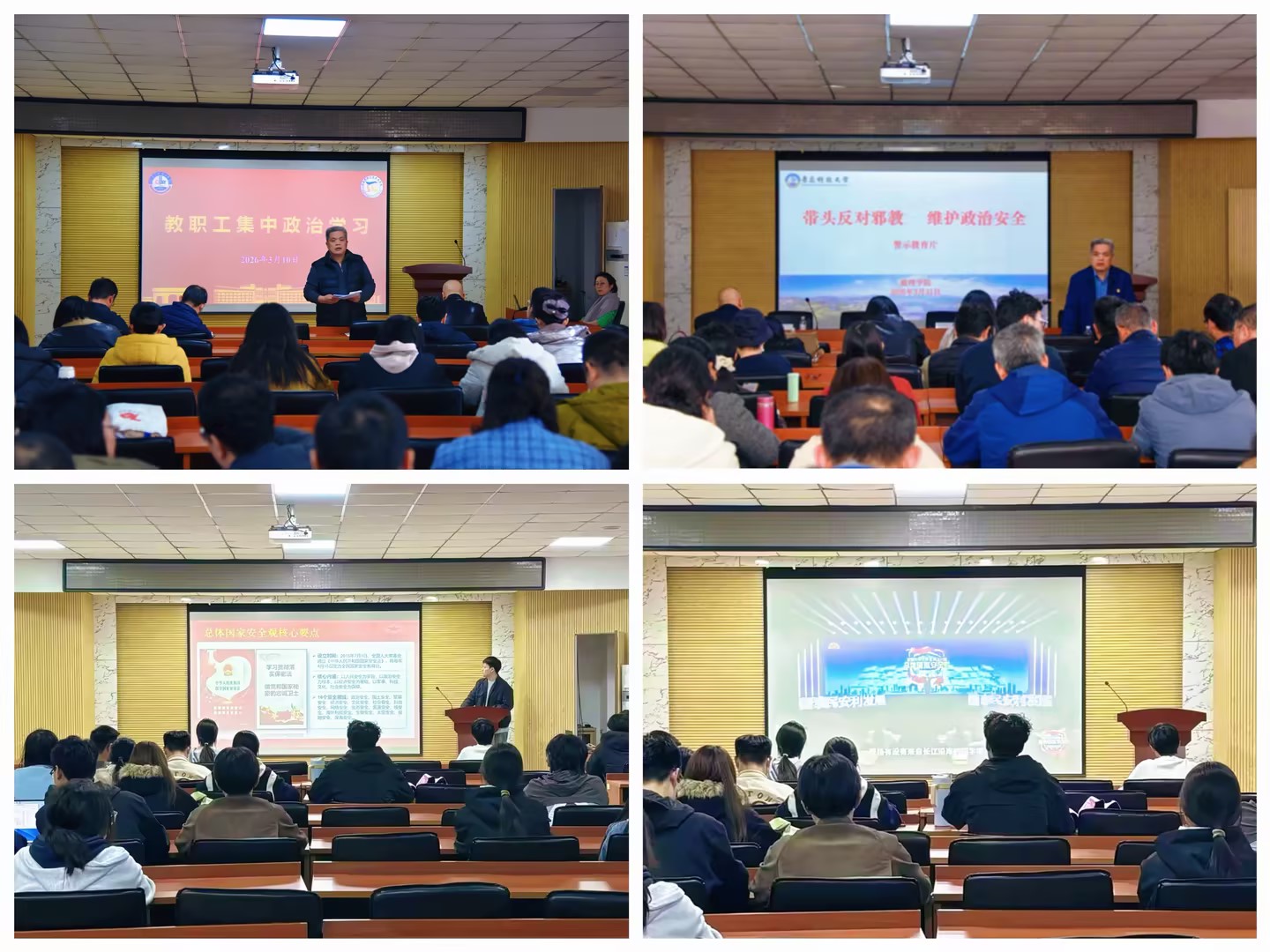 党委统领,压实责任强根基。学院党委将国家安全教育作为一项重要政治任务来抓,组织全体党员、干部开展主题党日活动,集中观看警示教育视频,引导党员干部以案为鉴、警钟长鸣。召开全体教职工大会,集体观看国家安全教育学习视频,深入领会总体国家安全观的核心要义与实践要求。组织师生以集中与分散相结合的方式收看“同上一堂总体国家安全观‘思政大课’”,课后各教研室、学生班级围绕课程内容开展交流讨论,切实将学习成果转化为维护国家安全的内在动力。