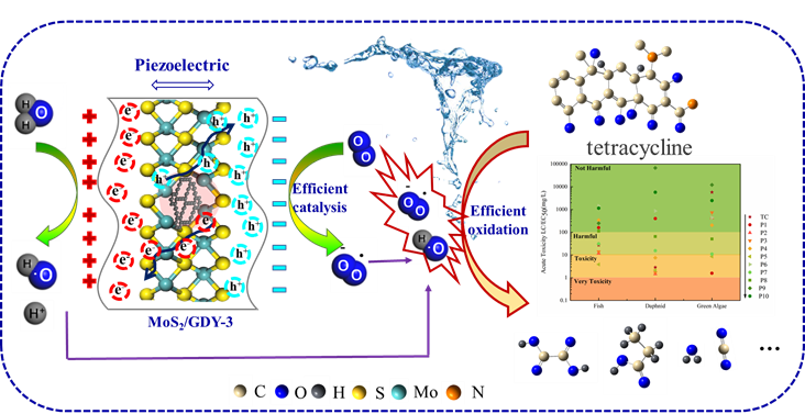该工作以“High effciently piezocatalysis degradation of tetracycline by few-layered MoS2/GDY: Mechanism and toxicity evaluation”为题发表于化工领域TOP期刊Chemical Engineering Journal上,DOI:https://doi.org/10.1016/j.cej.2022.135173。该文章以365英国上市公司官网为第一单位,通讯作者为我校化工学院孟凡庆副教授,第一作者为我校硕士研究生霍冰洁。