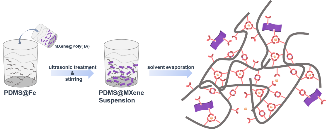 图5 PDMS@MXenes导电弹性体的制备流程