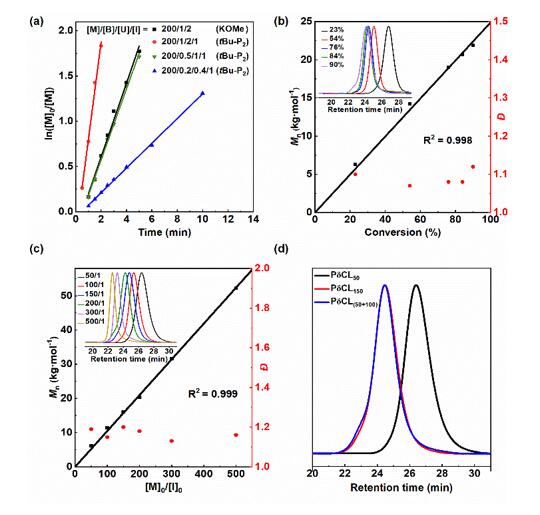 作者通过筛选合适的有机碱和脲组成二元催化体系,成功实现了生物基δ-己内酯(δCL)在室温本体条件下的“活性”/可控开环聚合,制备得到分子量和端基可控的聚(δ-己内酯)(PδCL)多元醇(图1和图2)。即便在0.05 mol %的低浓度下,该催化体系也表现出了很高的催化活性(图3)。