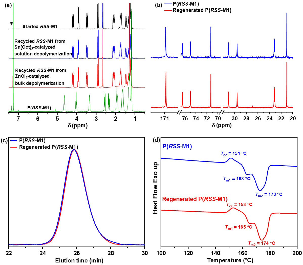有趣的是,所得聚醚酯产物可以在辛酸亚锡的催化下高选择性解聚回收得到高纯度的初始单体,回收过程单体不发生手性消旋。回收得到的单体可以聚合为分子量和熔点相同的聚合物,实现“单体-聚合物-单体”的闭合循环。