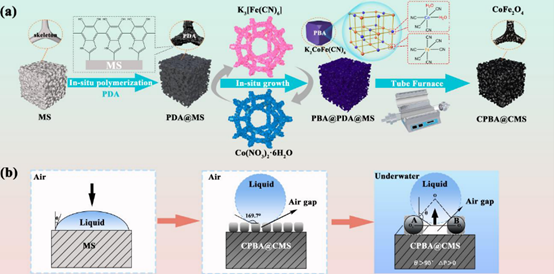 图3 CPBA@CMS的制备示意图(a)及疏水原理(b)